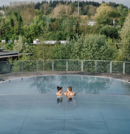 - Paar im Kaskaden-Becken des Spa Resort Geinberg
