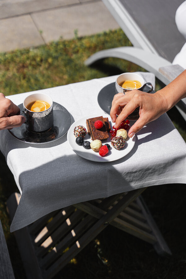 Natalie: Müde, aber auf eine gute Art und Weise. Und ich war tatsächlich total ruhig. Du hörst, wenn du nicht willst, außer den Geräuschen der Natur rundherum gar nichts. Man kann natürlich in der Villa Musik hören, Fernsehen, whatever. Aber wir haben bewusst nicht einmal das Radio eingeschalten, sondern einfach nur Ruhe und Stille genossen. Wenn man, wie wir, ein kleines Kind daheim hat, ist das doppelt erholsam. Man kommt an so einem Tag wirklich total runter, weil man einfach nichts und niemanden um sich herum hat. Dazu kann man vielleicht auch mal Gespräche führen, die man sonst so nicht führt, wenn immer Leute um einen herumwuseln.
